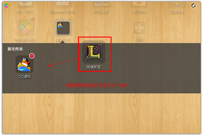 您可以通过两种方式进行添加操作:一种方法是在编辑状态下点击鼠标左键拖动图标至文件夹的图上之上,松开鼠标,则将图标成功添加进入文件夹中。