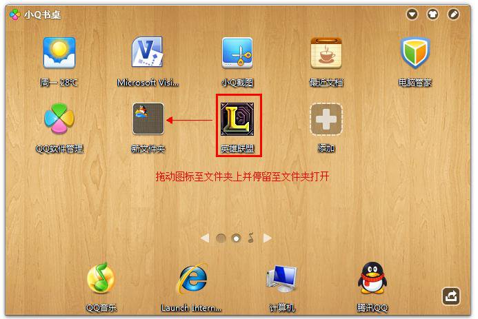 添加:将桌面上的程序快捷方式或文件直接拖进“小Q书桌”操作界面;